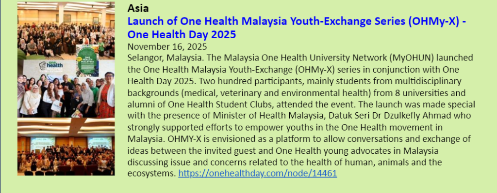 Applications are now open and are due January 31, 2024. The course is open to graduate students, professional students (MD, DVM, JD, RN, etc.) and early career professionals from all professional disciplines (including medicine, public health, veterinary medicine, agriculture, animal science, international development, laboratory science, environmental resources, wildlife conservation, law, engineering, social sciences, etc). International applicants are welcome to apply; additional COVID-19 travel protocols may be required.